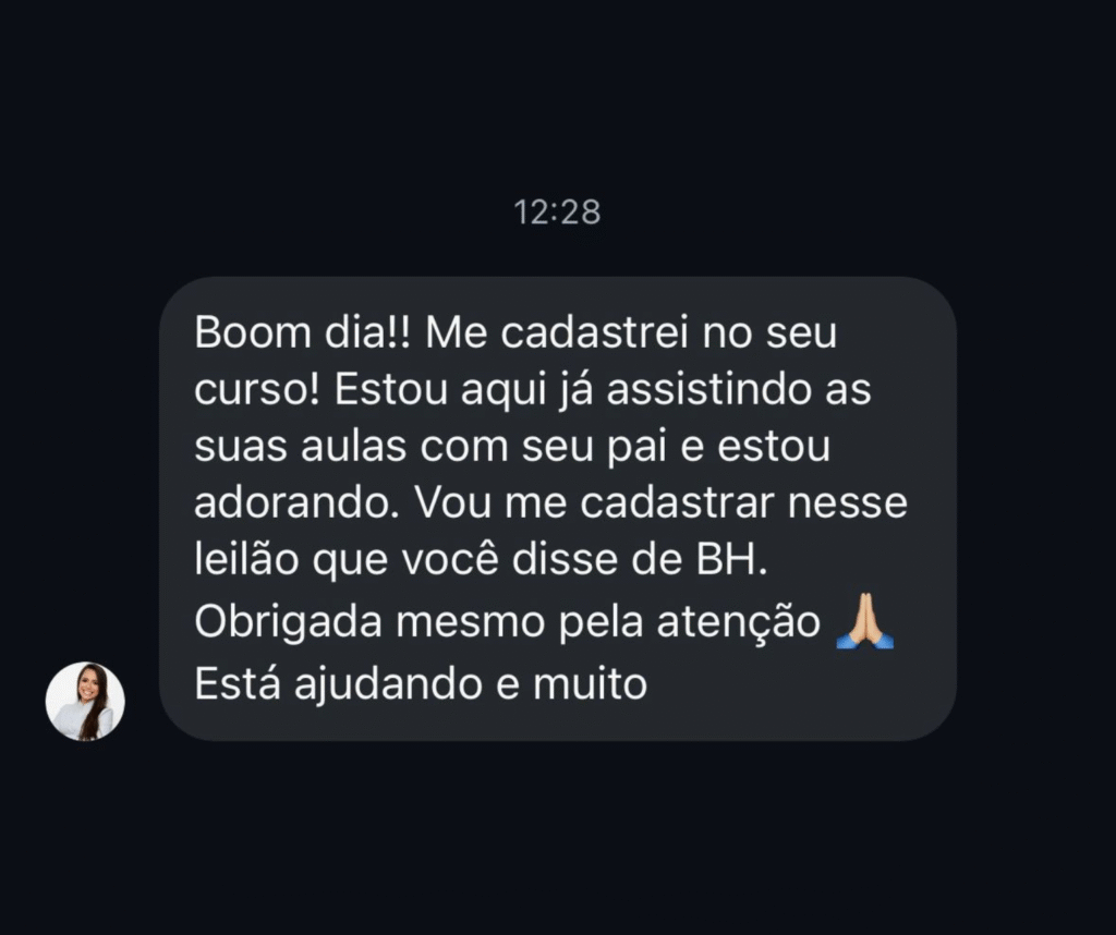 O curso ensina como analisar o mercado e escolher os melhores lotes, aumentando suas chances de lucro desde o primeiro arremate.